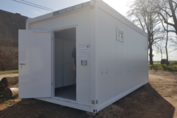 Neuer Sanitärcontainer der Aktion #LogistikHilft in Arzberg (Sachsen) an der B183.
